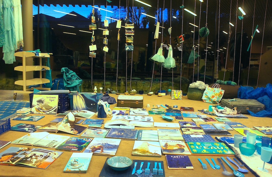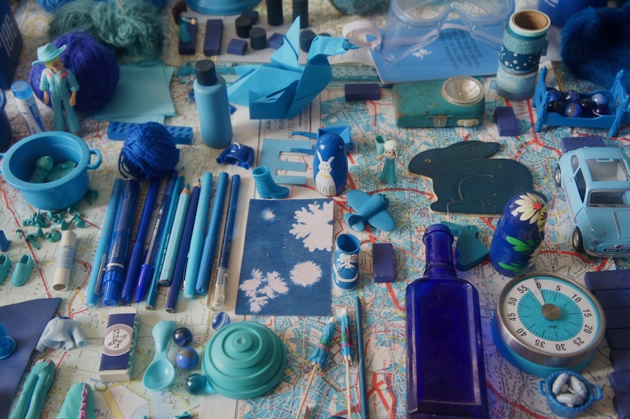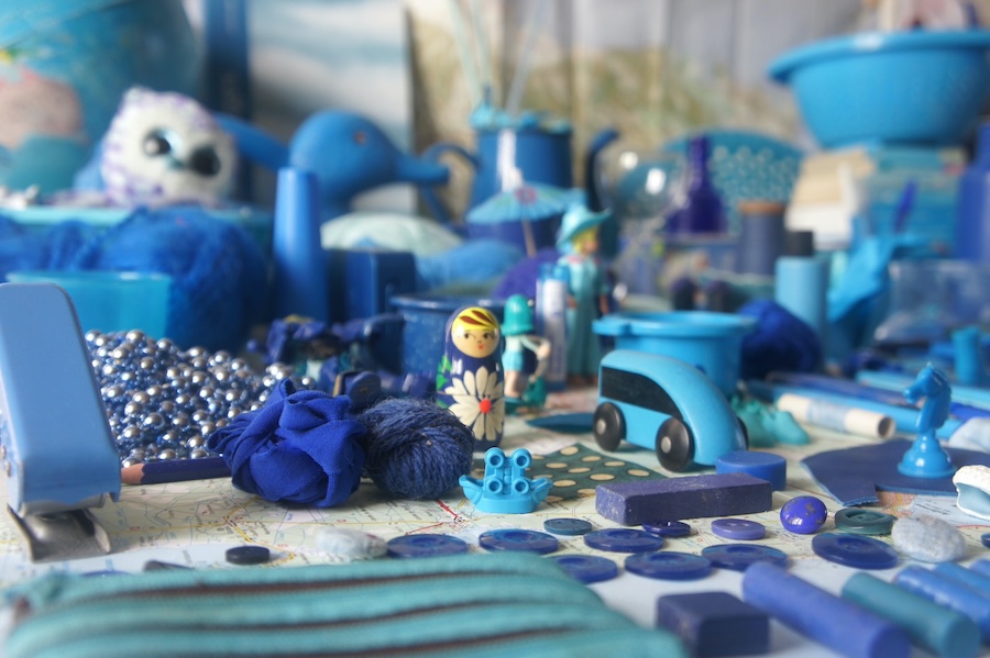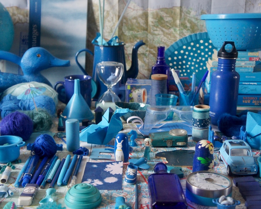 Une invitation à goûter des lectures picorées dans des pages bleues, parmi des objets bleus, à l’heure où les ombres sont bleues.